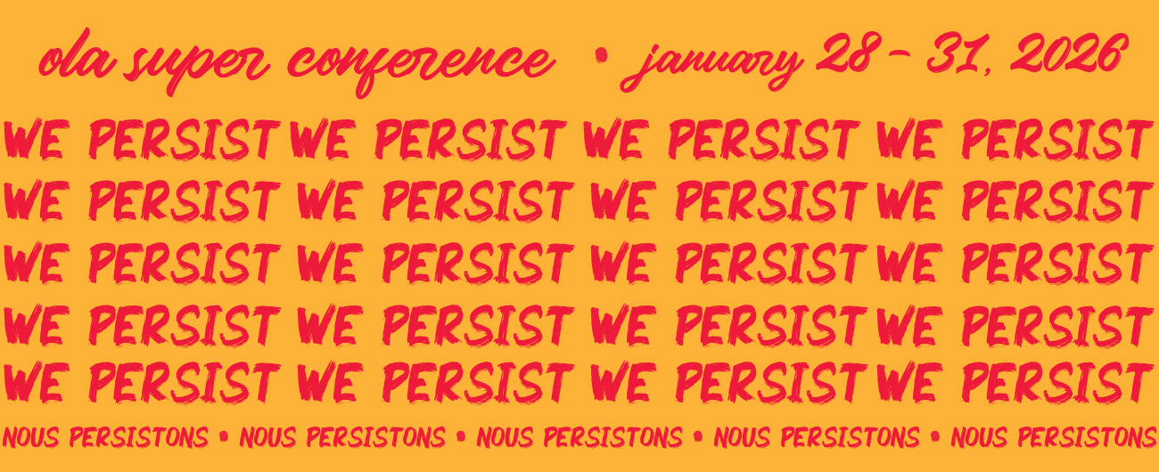 The Ontario Library Association is Canada’s largest library organization and OLA’s Super Conference is Canada’s largest continuing education event in librarianship. The program is built brick-by-brick, time slot by time slot, by some twenty co-ordinators working with dozens more to identify the needs to be addressed in this time and this place. With expert speakers, engaging workshops, and valuable networking opportunities, you'll gain valuable insights and skills to enhance your personal and professional growth. OLA Super Conference 2026 will take place from January 28 - 31, 2026 and is the perfect opportunity to connect with fellow library people and expand your knowledge in a fun and immersive environment. Don't miss out on this transformational experience! Registration will open and the full conference program will be available in mid-November.
